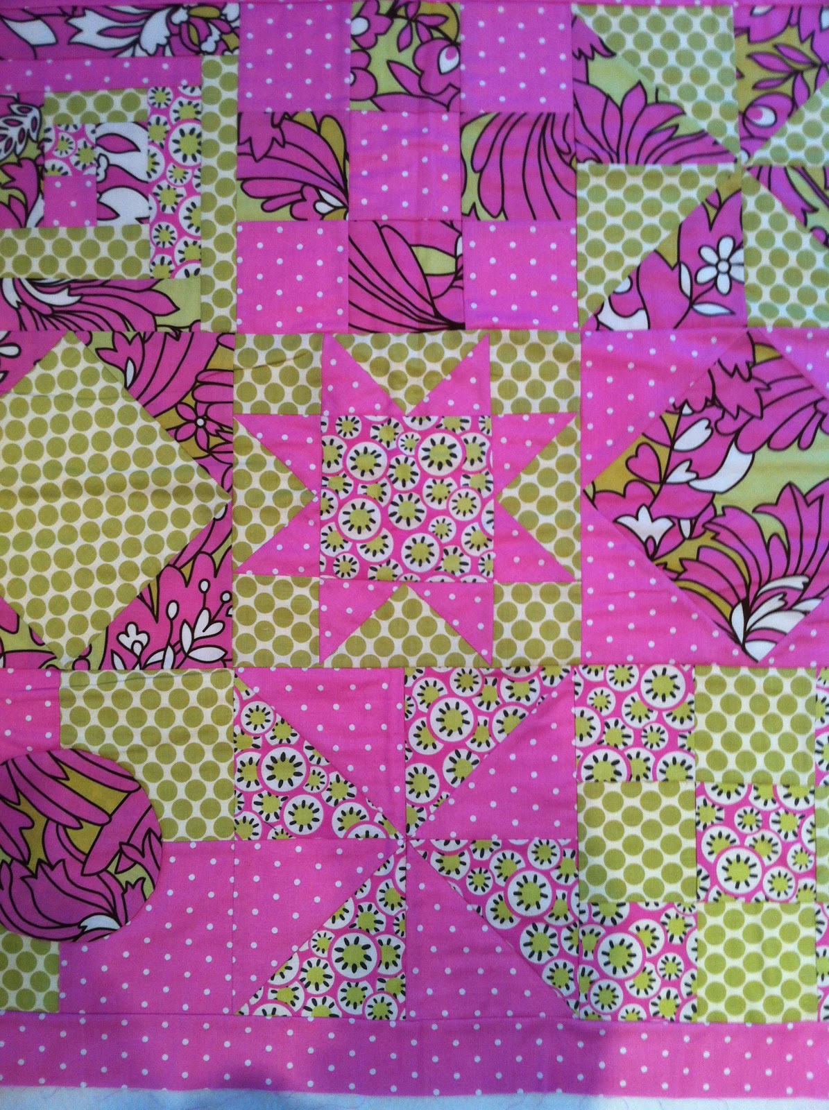 So, when a six weeks beginners’ course popped up on Facebook it caught my eye. I mentioned it to a friend and before we knew it we had ‘fat quarters’ of fabric, flat headed pins and lots of cereal boxes cut into squares of various shapes. Then followed five weeks of cutting, pressing, sewing, chatting and cursing with the net result that I have almost finished my first effort. ( See below for proof.)